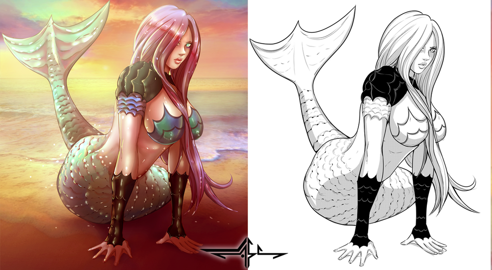 Digital illustration, lineart and color of a mermaid. You can find in the pack: